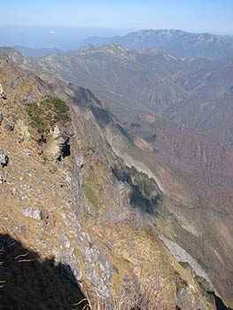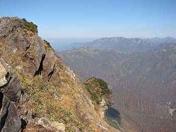 山頂から一の倉沢を見下ろすと、日本三大岸壁 (他は、穂高・剣)の一の倉岸壁が望めました。 昭和6年に統計をとってから、現在までに約8百 人もの遭難者を出したこの絶壁! ロッククライミングのメッカとはいえ、数字の多さ には複雑な想いがしました。 3時間後には、一の倉沢を下界から望む場所に 着ていました。ここからの景色は、谷川岳を代表 する景色。ついついシャッターを何回もきっていま した。 今夜の宿は、谷川温泉のペンション「セルバン」 豊富な温泉と料理には大満足でした。 谷川岳での宿は、ここが一押しです。 |