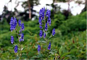 | 写真右は、山荘脇に咲き誇っていた「トリカブト」。 根を煎じて飲むと・・!気をつけましょう。 その下は、西穂高岳頂上の真下の難所。 ツアーの高齢者がガイドのザイルで降りている ところです。限られたルート。お互い登り下り、 譲り合いながらの登攀でした。 ガスの中に、真中あたりに雷鳥が映っています。 下の2枚は、ピラミッドピークの南北からそれぞれ 撮影したもので、一方は乗鞍岳・焼岳を、もう 一方は、西穂高岳をバックにしています。 |